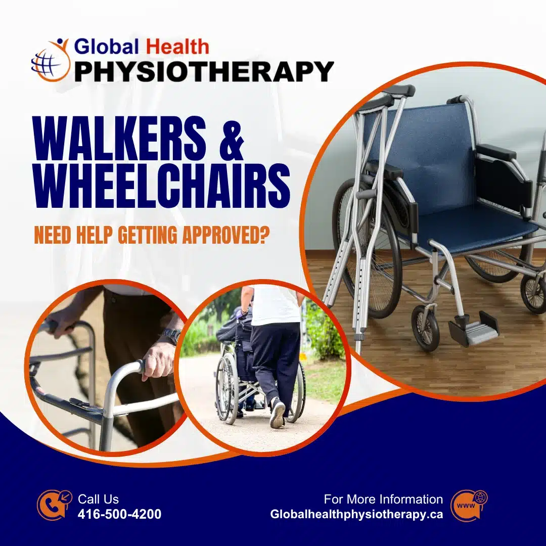 Global Health Physiotherapy Clinic is an official ADP authorizer for those who are in need of a personalized mobility aid such as a wheelchair or walker. Our practitioners are licensed to provide ADP assessments to diagnose your needs for an assistive device. We prescribe those needs to the Assistive Devices Program to facilitate coverage for a walker, wheelchair or another personalized mobility device.